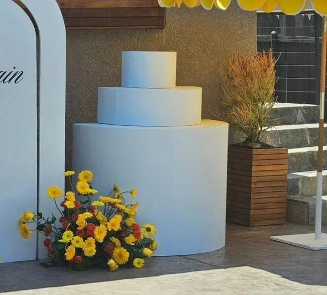 Wooden cake backdrop display | $150